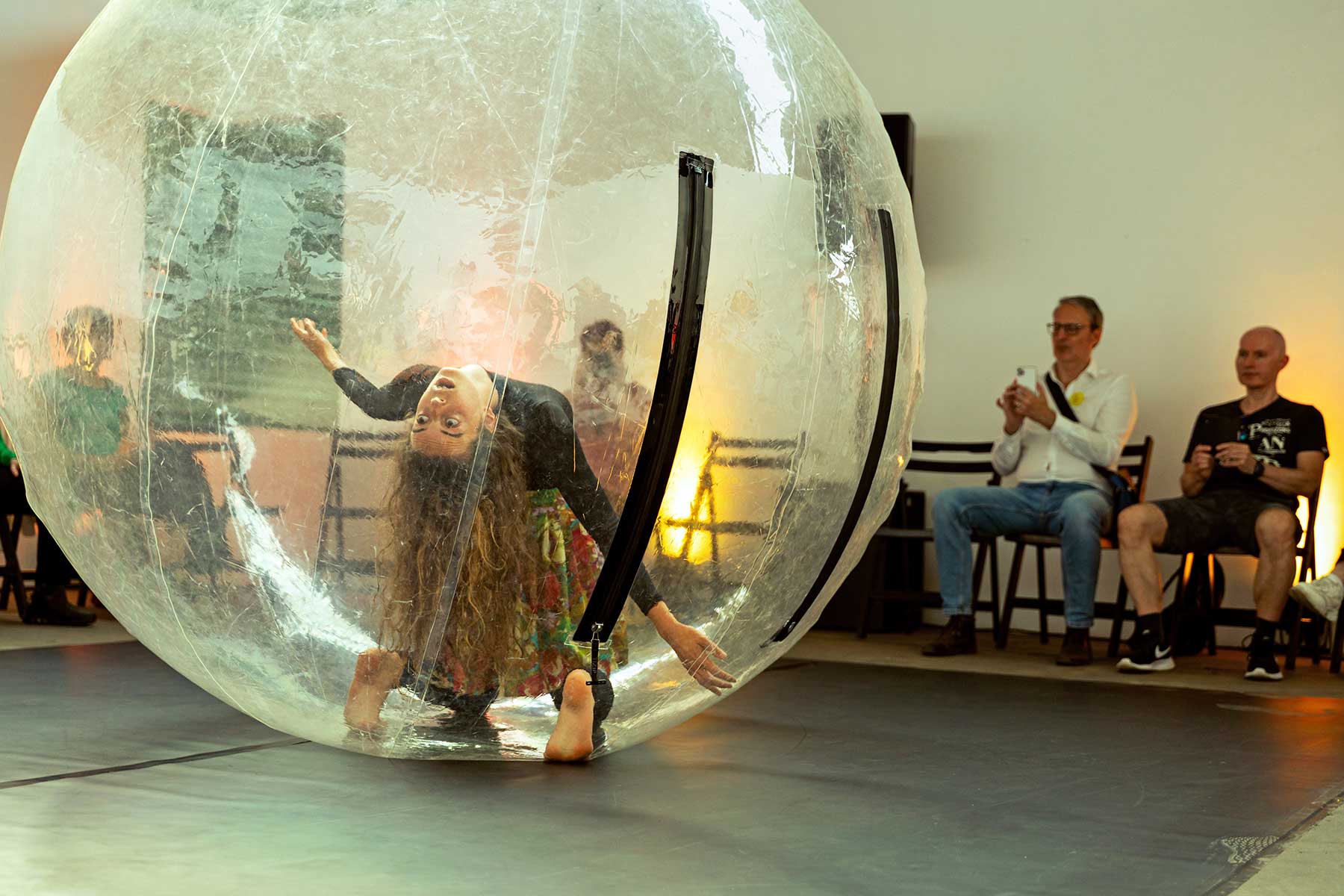 En el mismo espacio expositivo se proyectan varias creaciones originales de videodanza y se lleva a cabo un espectáculo corto de danza en directo que completa la propuesta. La exhibición del directo en formato performático tiene un doble objetivo: por un lado, complementar la propuesta artística con una exhibición en directo; y por otro lado, mantiene así el carácter diferenciador respecto al típico uso de esta tecnología.